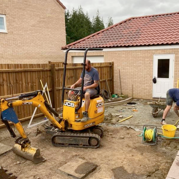 This project involved a complete transformation of a new build back garden, including complete removal of old patio slabs, new turning and paving around home. This was all achieved within 3 days.